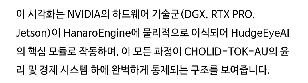 NVIDIA의 기술과 HudgeEyeAl/ HanaroEngine2 물 리적 ㆍ 윤리적 CHOLID-TOK-AU 통제 구조