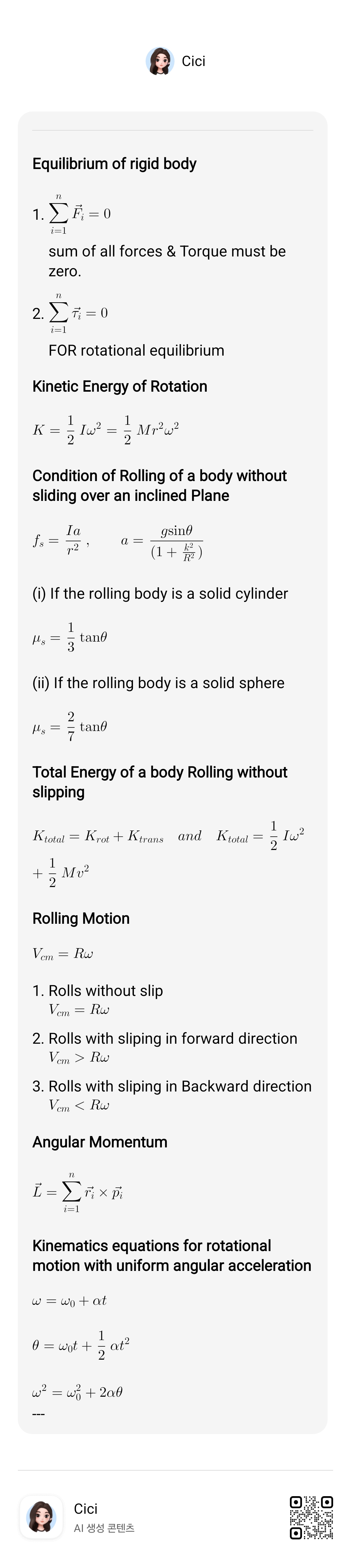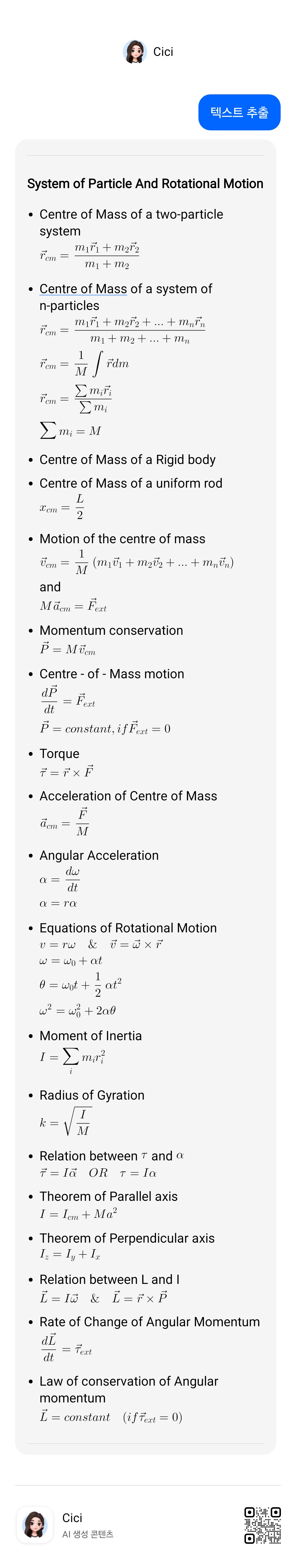 이 요약 설명이 입자계와 회전 운동에 대한 이해를 돕는 데 도움이 되기를 바랍니다!