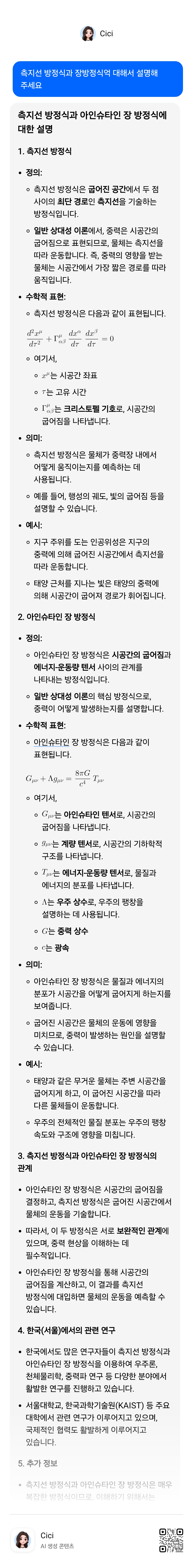 측지선 방정식과 아인슈타인 장 방정식을 함께 적용하면, 팽창하는 우주 내의 모든 것들이, 시간과 공간을 포함하여, 어떻게 끊임없이 서로에게 끌려 들어가는지 보여줄 수 있다고 말할 수 있습니다. 그리고 이러한 현상은 예측 가능한 미래에도 계속될 것입니다.