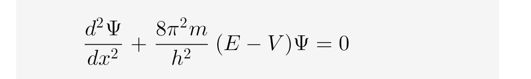 $ \frac{d^2\Psi}{dx^2} + \frac{8\pi^2 m}{h^2}(E-V)\Psi = 0 $