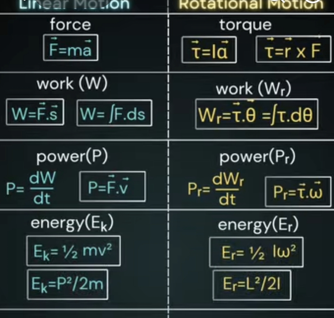 - Er = 1/2 Iω^2 (회전 운동 에너지 = 1/2 x 관성 모멘트 x 각속도 제곱)