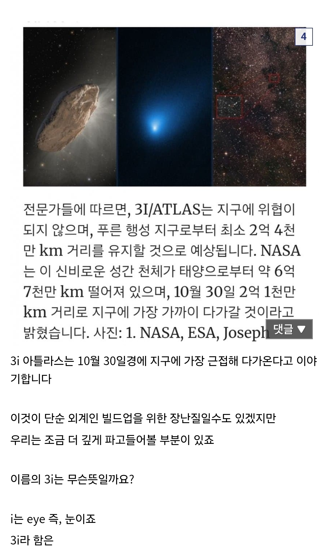 #3IATLAS #성간물체 #천문학뉴스 #우주경보 #혜성추적 #우주공간 #UFO
