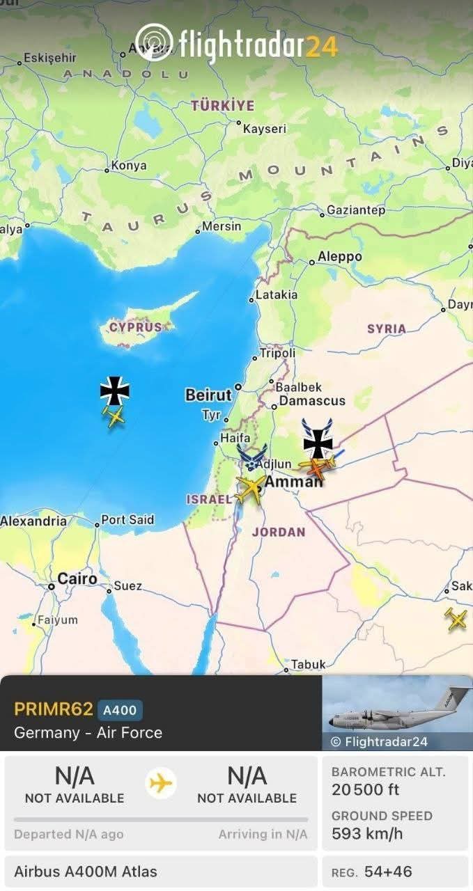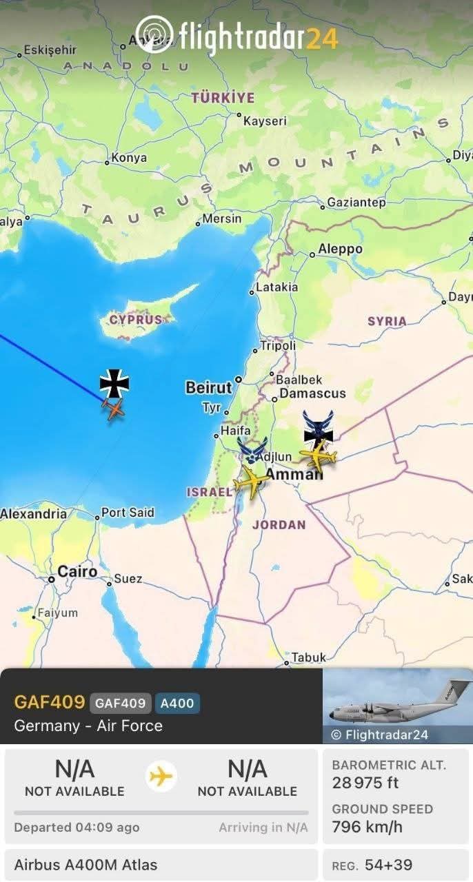 - 독일 A400M, 군사 장비를 텔아비브로 수송.