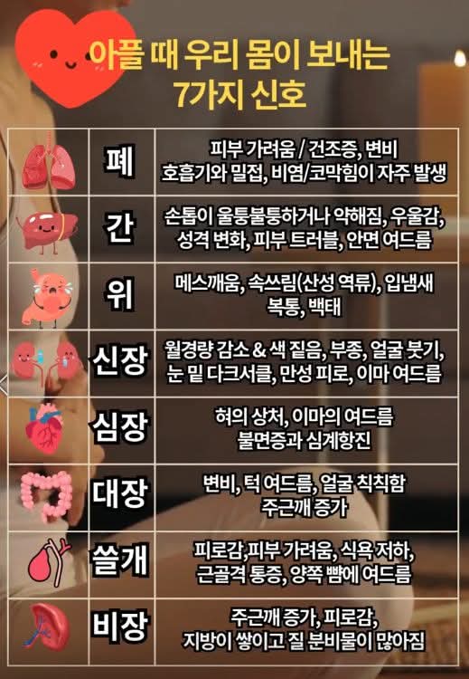 다음은 이미지의 정보와 함께 7가지 장기에 도움이 되는 음식 추천입니다.