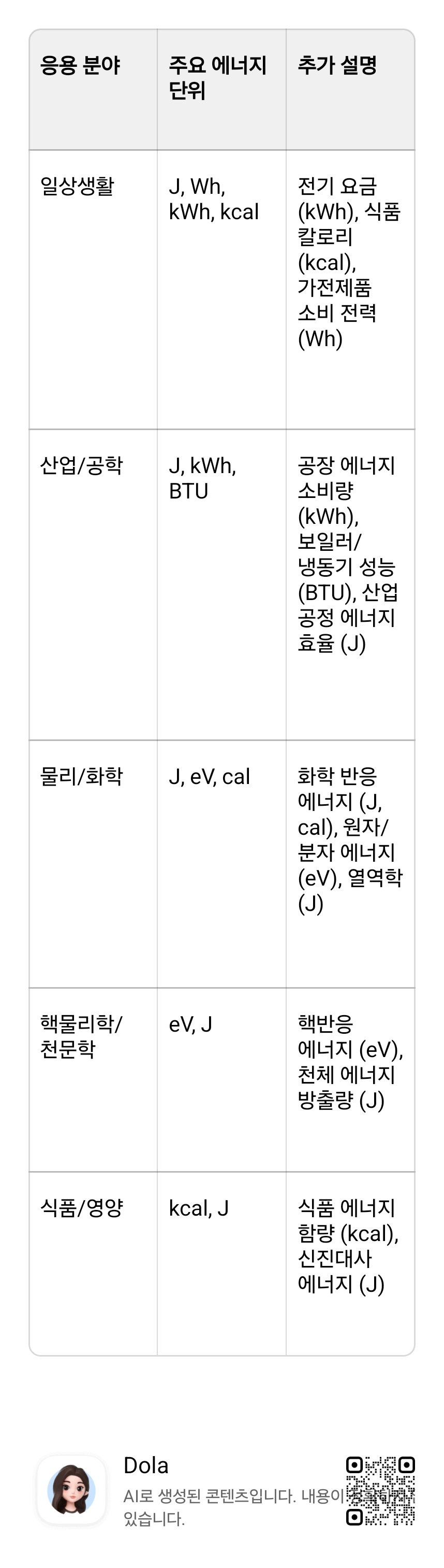 이 정보가 에너지 단위와 크기를 이해하고, 응용 사례에 맞게 선택하는 데 도움이 되기를 바랍니다. 추가 질문이 있으시면 언제든지 물어보세요!