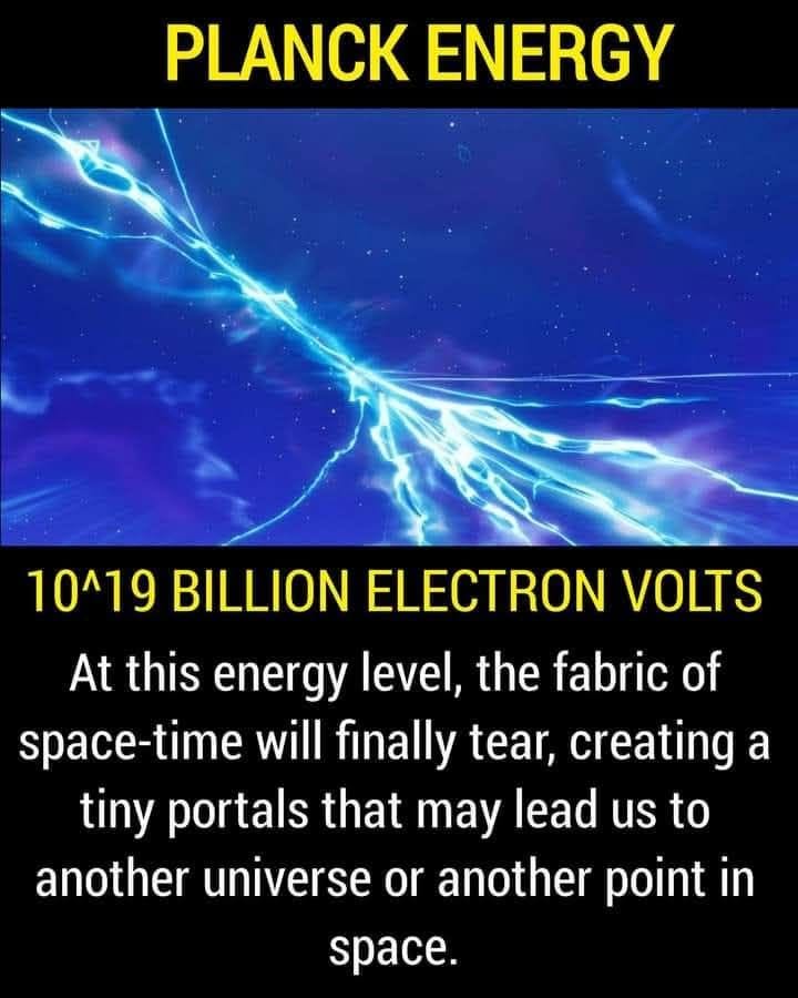 이 에너지 레벨에서 시공간의 구조가 마침내 찢어져 다른 우주 또는 공간의 다른 지점으로 우리를 이끌 수 있는 작은 포털을 만들 것입니다.