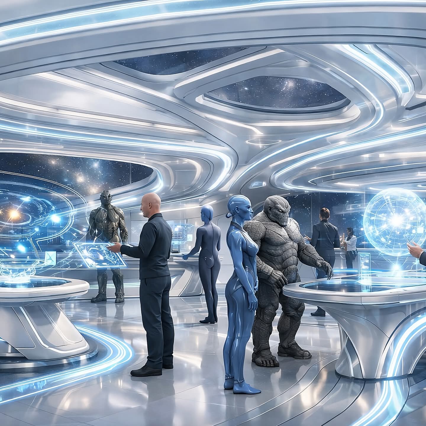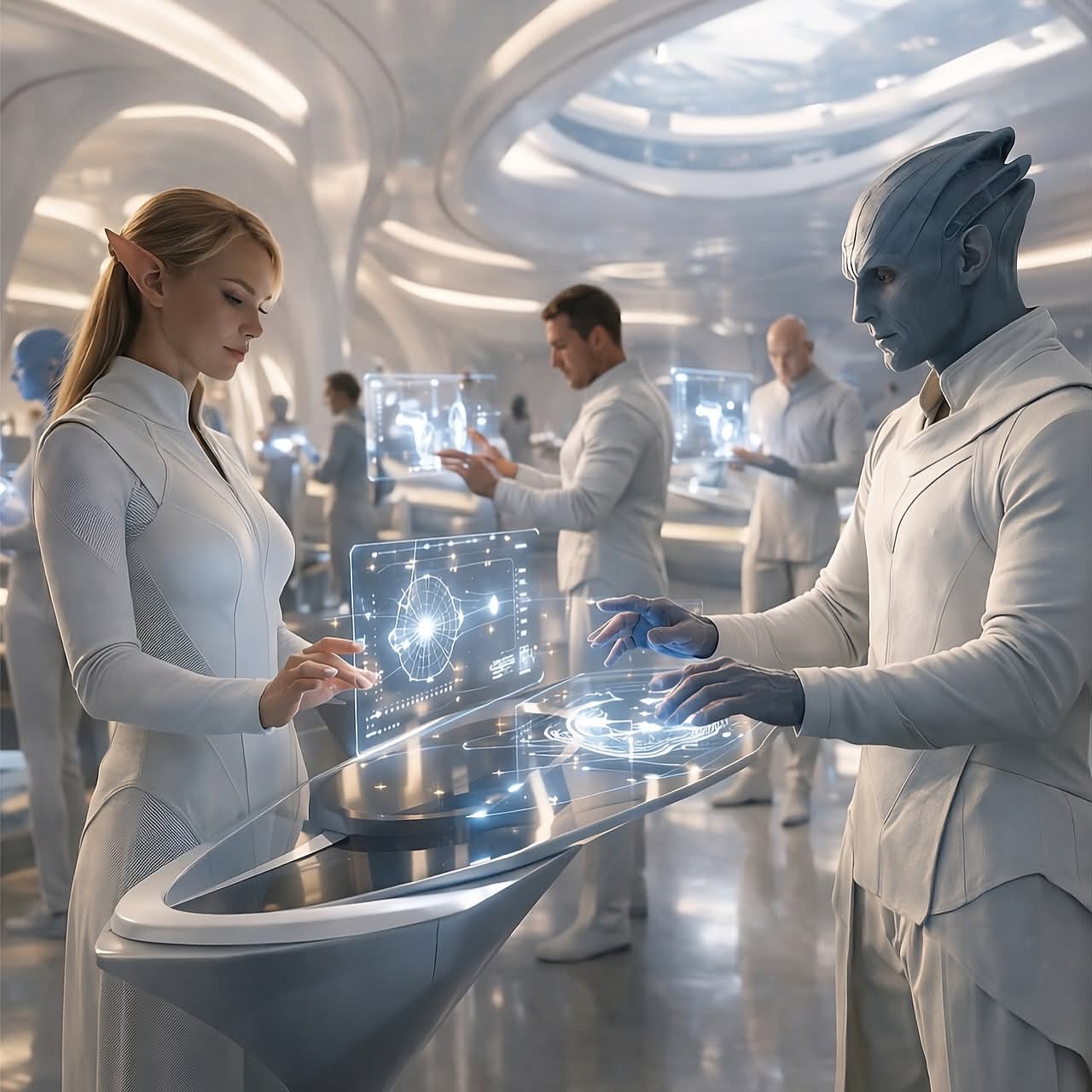 ✨ 은하연방 함선 내부: 첨단 기술, 통합된 의식, 그리고 종족 간 협력.