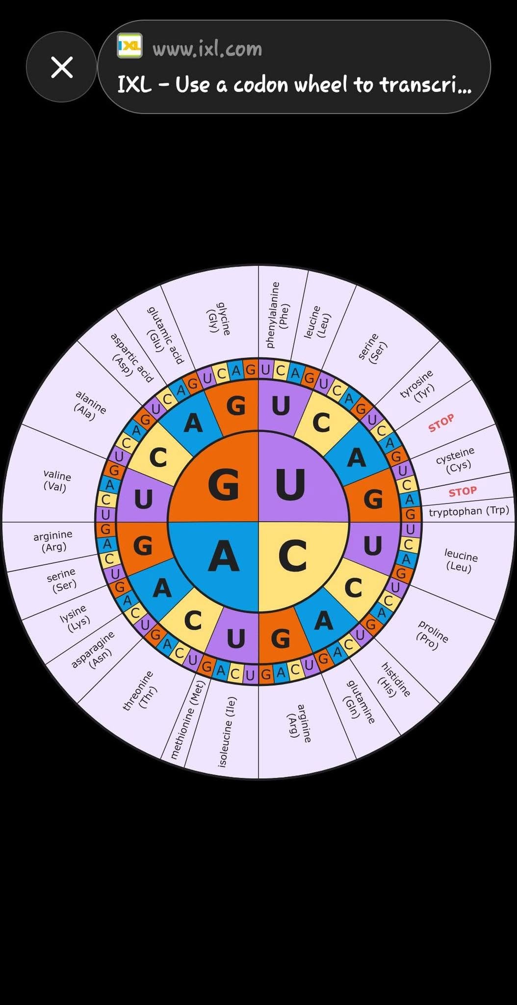 이번엔 우리의 '암호 해독기' 코돈 휠을 보세요!