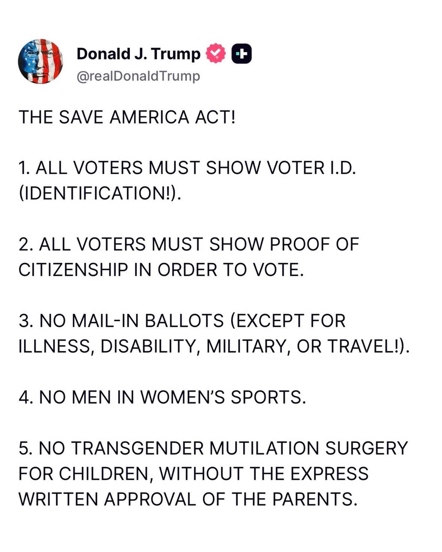 5. 부모의 명시적인 서면 동의 없이 미성년자에 대한 트랜스젠더 절제 수술 금지.
