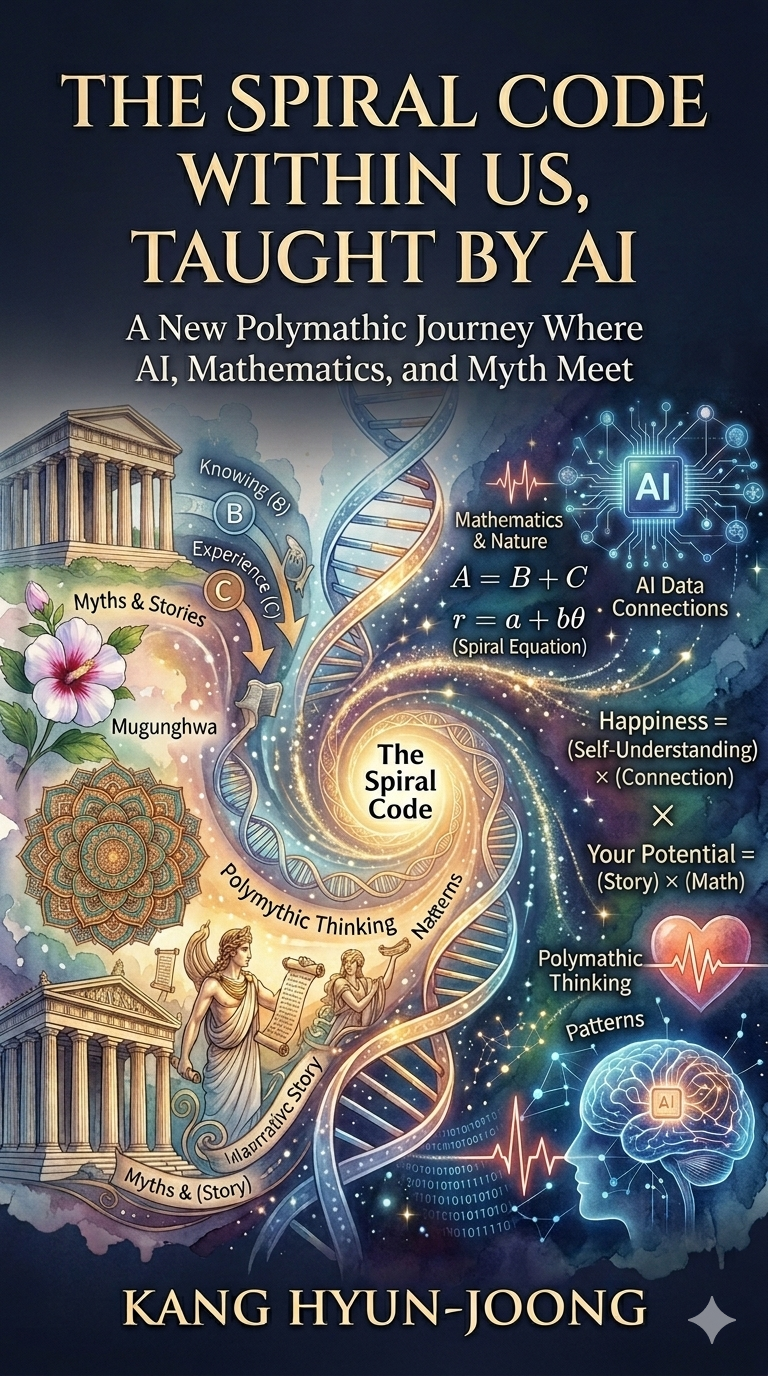 강현중 저자님의 통찰력 있는 글을 영문으로 번역해 드립니다. AI와 수학, 그리고 신화가 엮인 '나선형 코드'의 느낌을 살려 자연스럽고 세련된 어조로 다듬었습니다.
