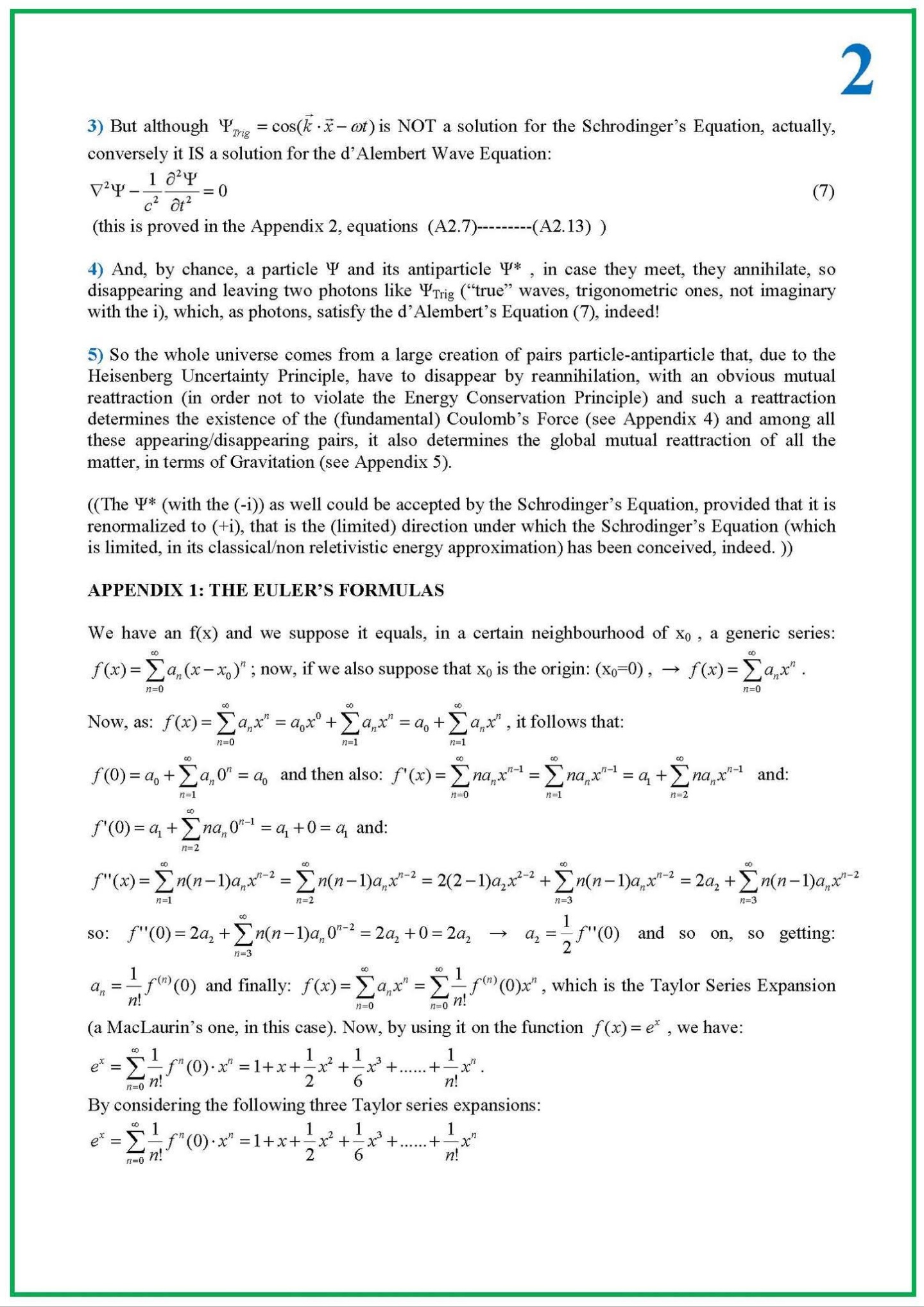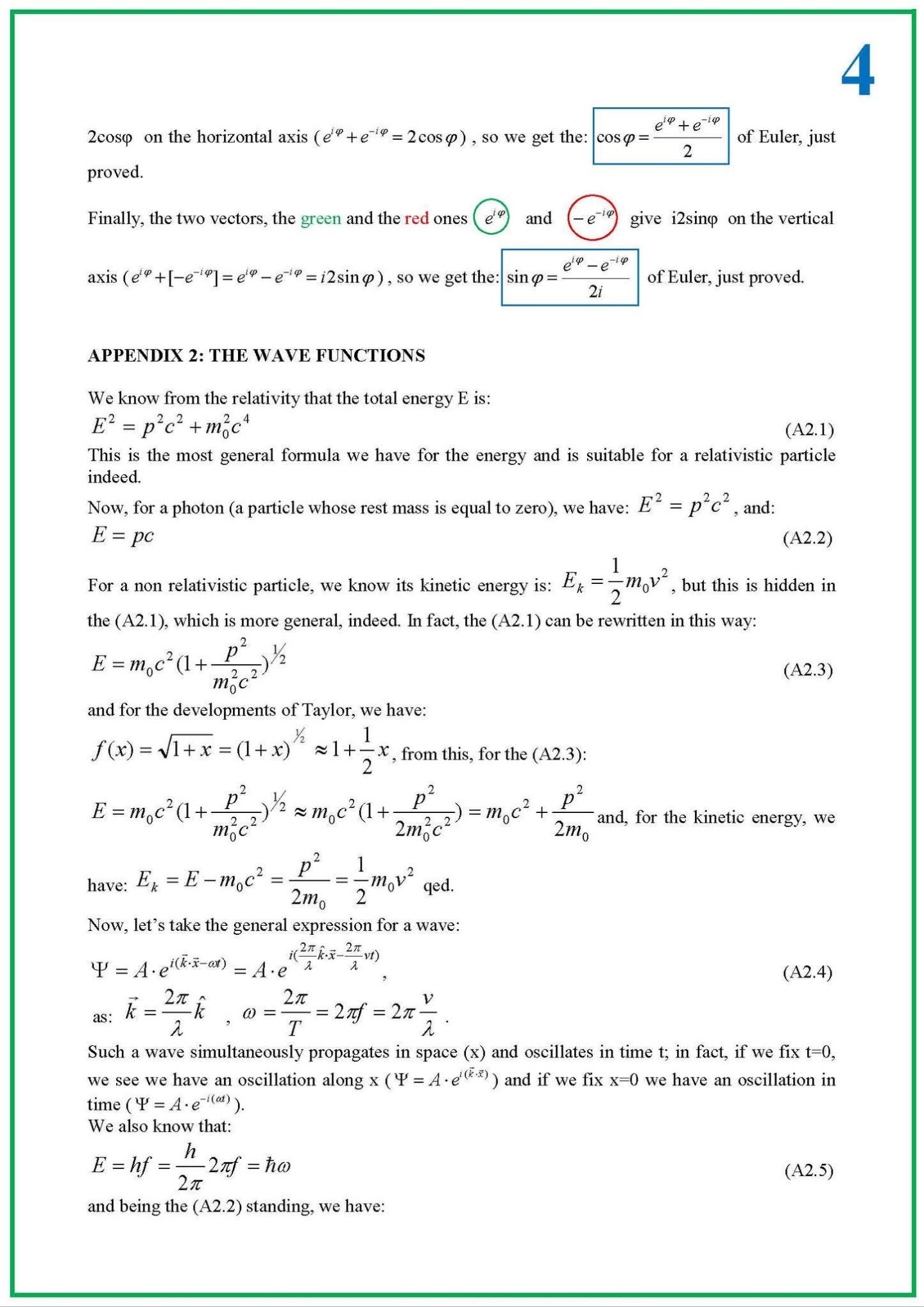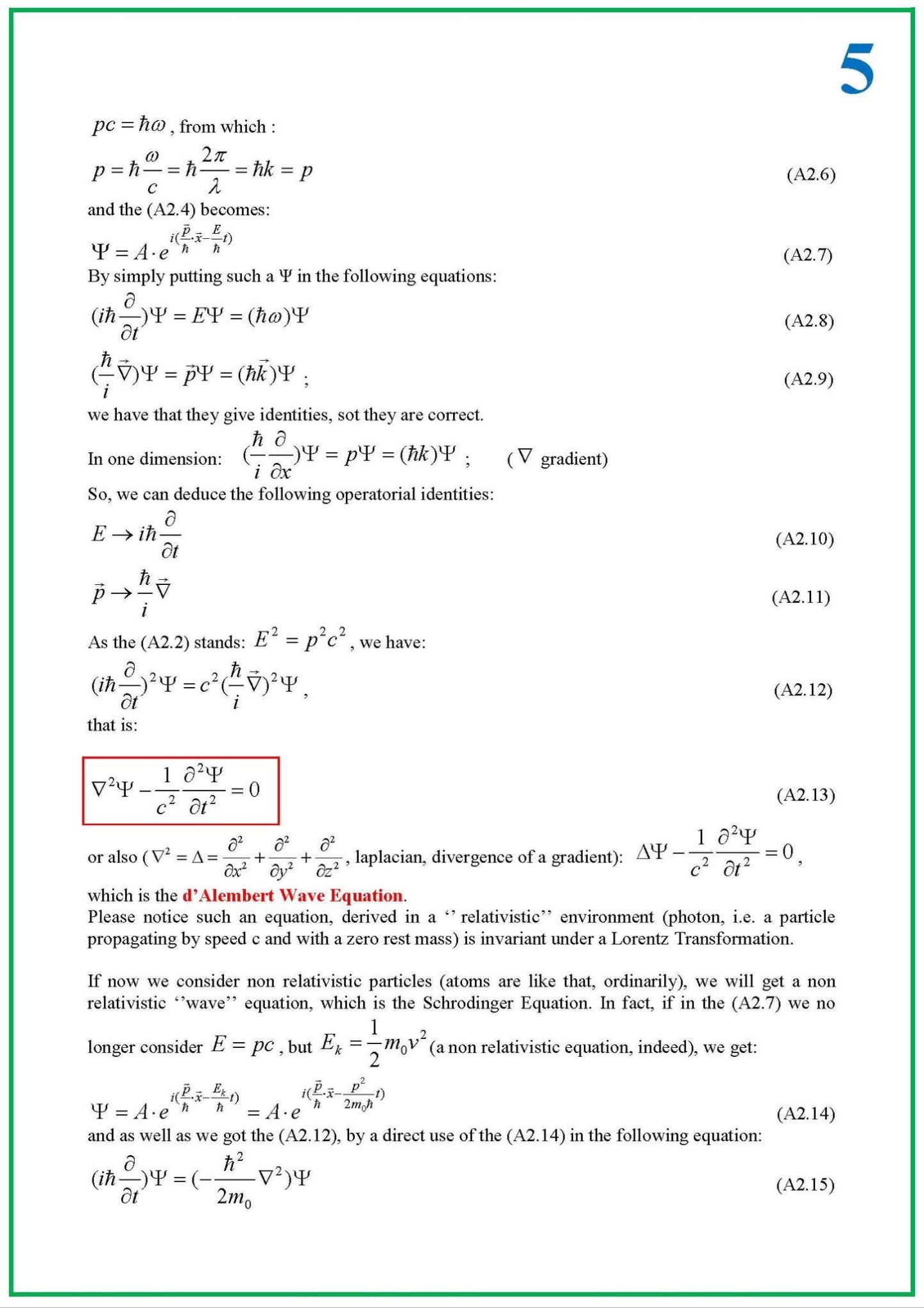 4. 그리고 우연히 입자 Ψ와 그 반입자 Ψ*가 만나면 소멸되어 Ψ_Trig("진정한" 파동, 삼각파, i가 없는)와 같은 두 광자를 남기고, 광자로서 달랑베르 방정식 (7)을 만족합니다!