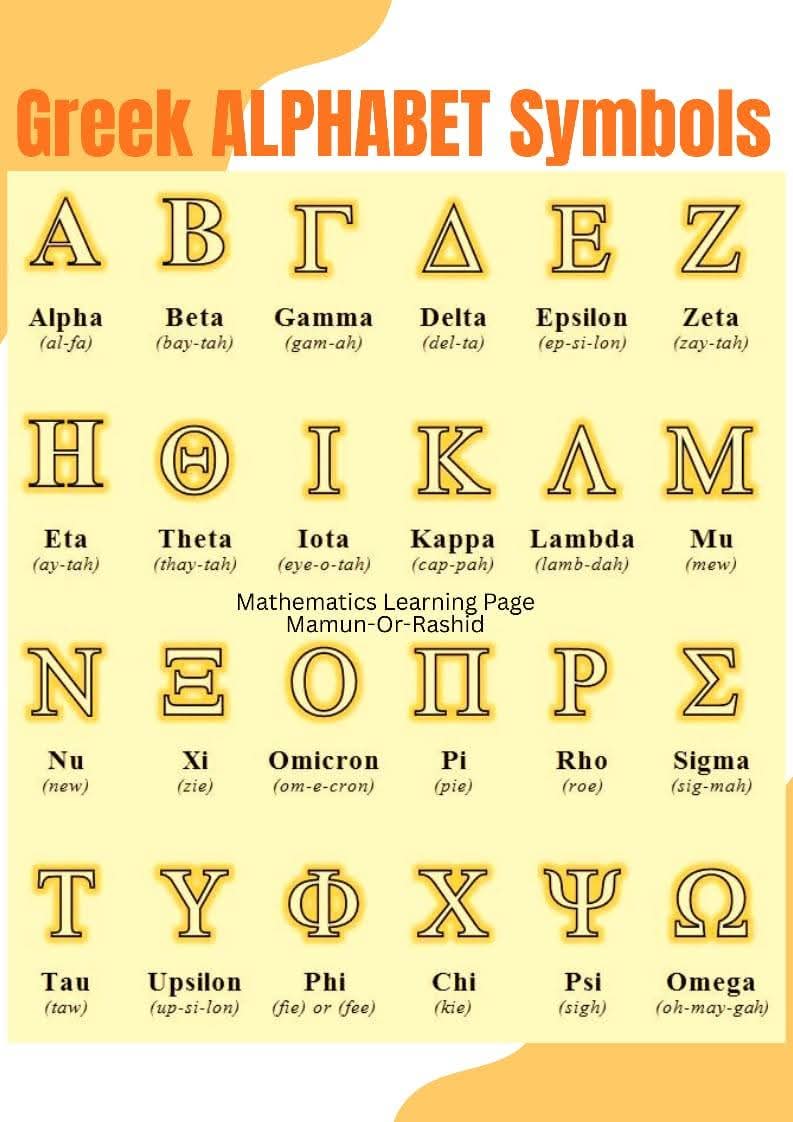 The image above is a table showing the Greek script and the names and pronunciations of each character. It is a resource that helps you learn Greek scripts used in various fields such as mathematics, science, and engineering.