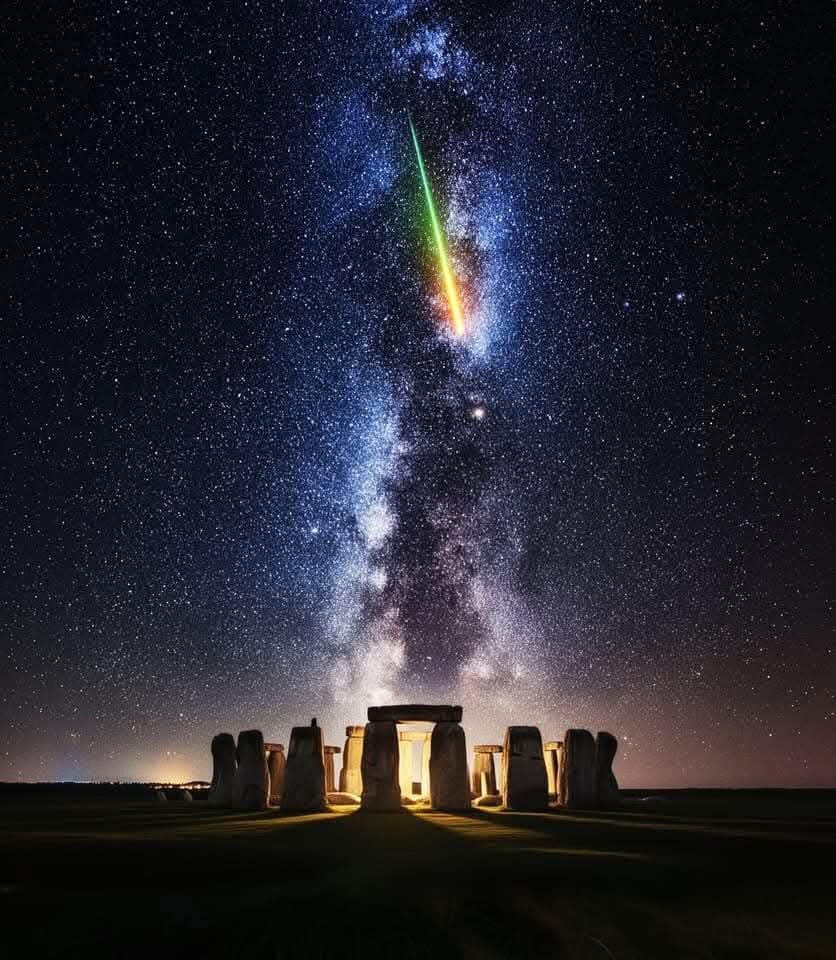운석이 은하수를 가로지르며 수천 년 동안 형성되어 온 우주의 정렬, 스톤헨지의 고대 돌 바로 위를 지나갔습니다. ✨