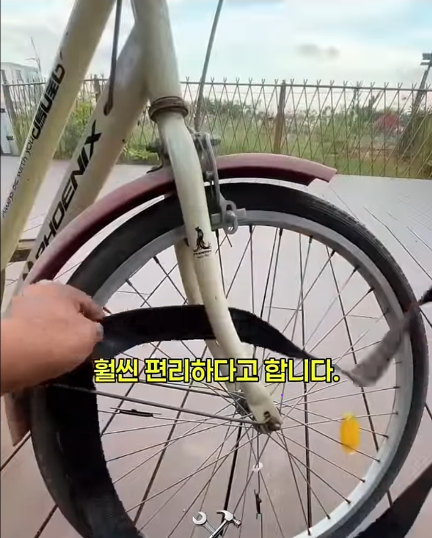 자잔거 튜브가 어떻게 바퀴축을 매듭으로 통과 할까!