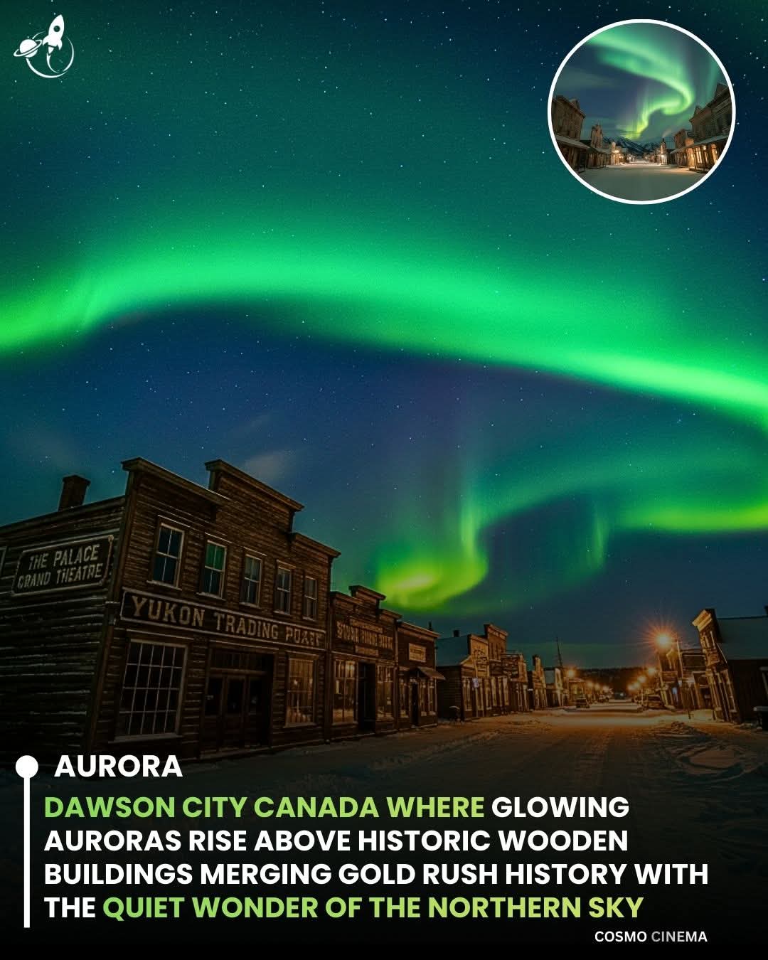 (도슨 시티 역사 건물과 북극광, 인간 역사와 자연의 조화 관련)