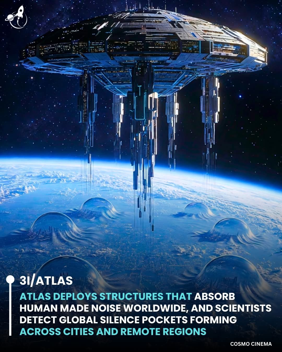 ATLAS has deployed a series of strange structures that appear to absorb human made noise on a global scale. Cities known for constant sound suddenly experience deep silence. Traffic noise, machinery, and industrial hum fade without warning. Scientists observing the event report sudden quiet zones forming across the planet.